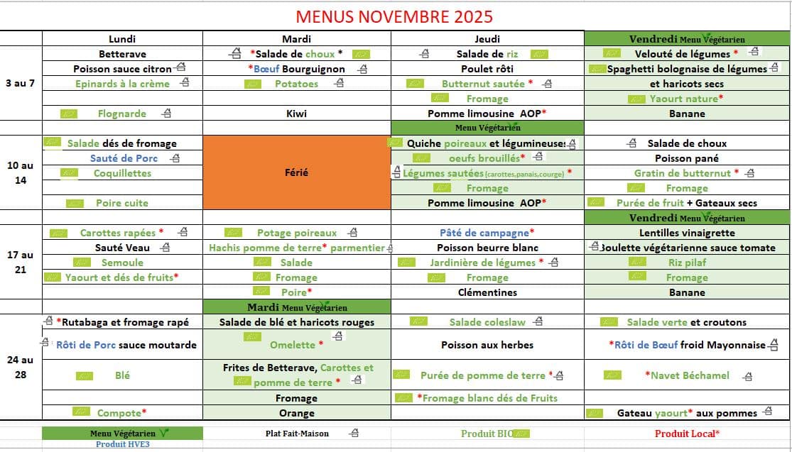 Menus scolaires